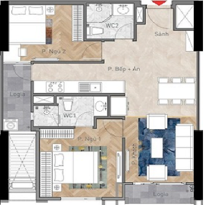 Căn hộ điển hình mặt bằng (t6 đến tầng t16)